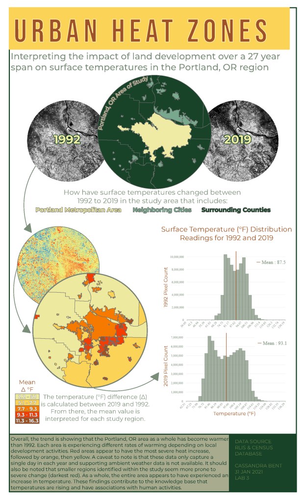 This project is an example of surface temperature raster analysis and was completed as part of the remote sensing course with Portland Community College.